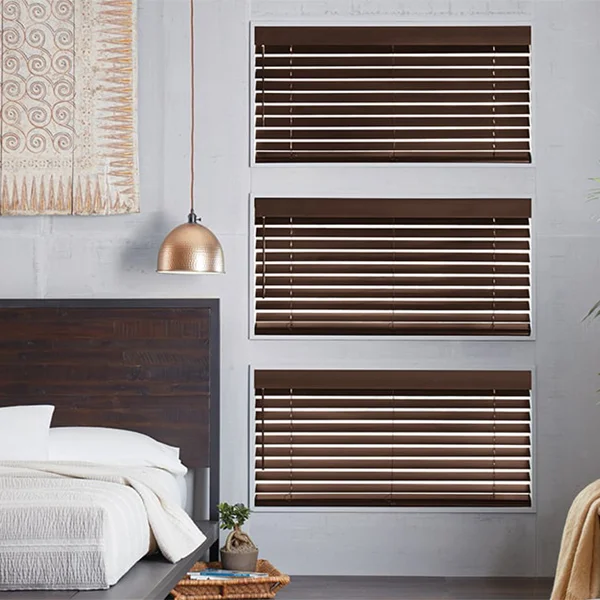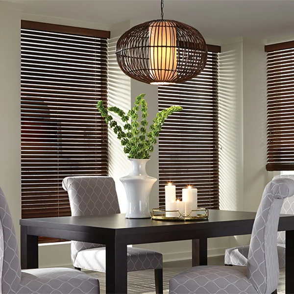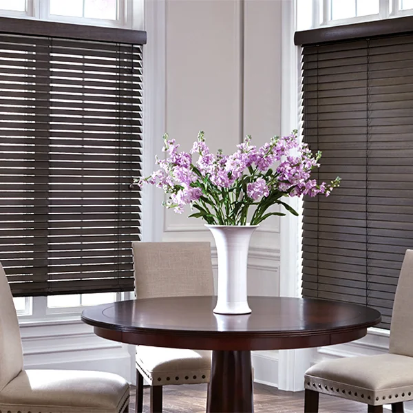 It’s our most comprehensive collection of alternative wood blinds in realistic grain patterns built to withstand heat and humidity. Choose from popular stains, and flat and beveled options.
