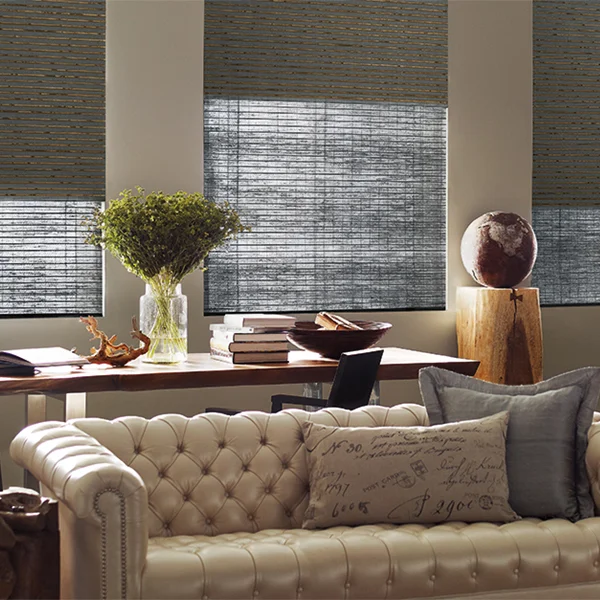 An innovative alternative to woven woods and solar screens, The Alustra® Collection of Woven Textures® artfully blend unique fibers and sophisticated design to create distinctive light filtering fabrics.